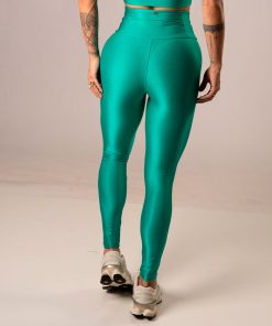 Legging Marcela em Poliamida, tecido com brilho canelado alta compressão possui cós alto e anatômico, com bolso embutido atrás.