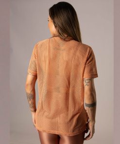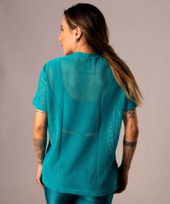 Camiseta Pri estilo over tamanho ÚNICO em Poliamida, tecido em tela possui comprimento e mangas mais alongados.