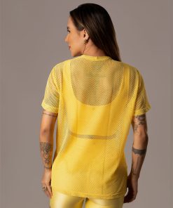 Camiseta Pri estilo over tamanho ÚNICO em Poliamida, tecido em tela possui comprimento e mangas mais alongados.