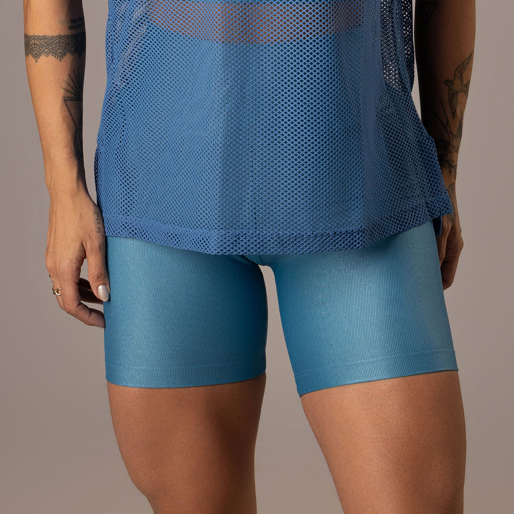 Nosso Shorts Fer em Poliamida, tecido com brilho canelado alta compressão possui cós alto e anatômico, com bolso embutido atrás.