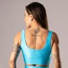 Top Valentina em Poliamida, tecido com brilho canelado alta compressão possui alças mais largas e comprimento mais alongado